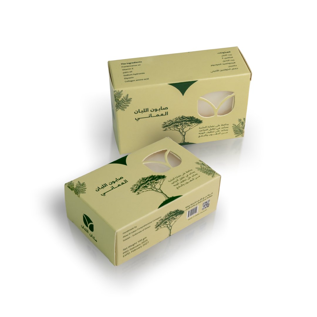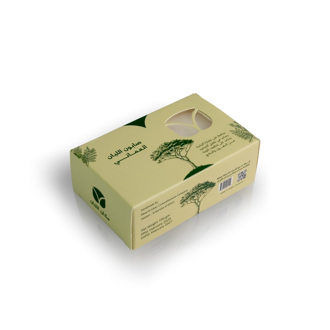 صابون اللبان العماني، صابون طبيعي وعضوي ، بخلاصة اللبان العماني الأصلي خالي من البتروكيماويات، والبارابينات، والألوان والمواد الحافظة الضارة، والزيوت المعدنية وكذلك السيليكون.